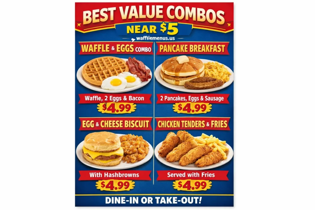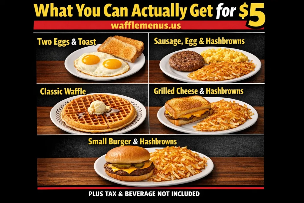 | Official $5 menu? | No – Waffle House does not publish a value menu |