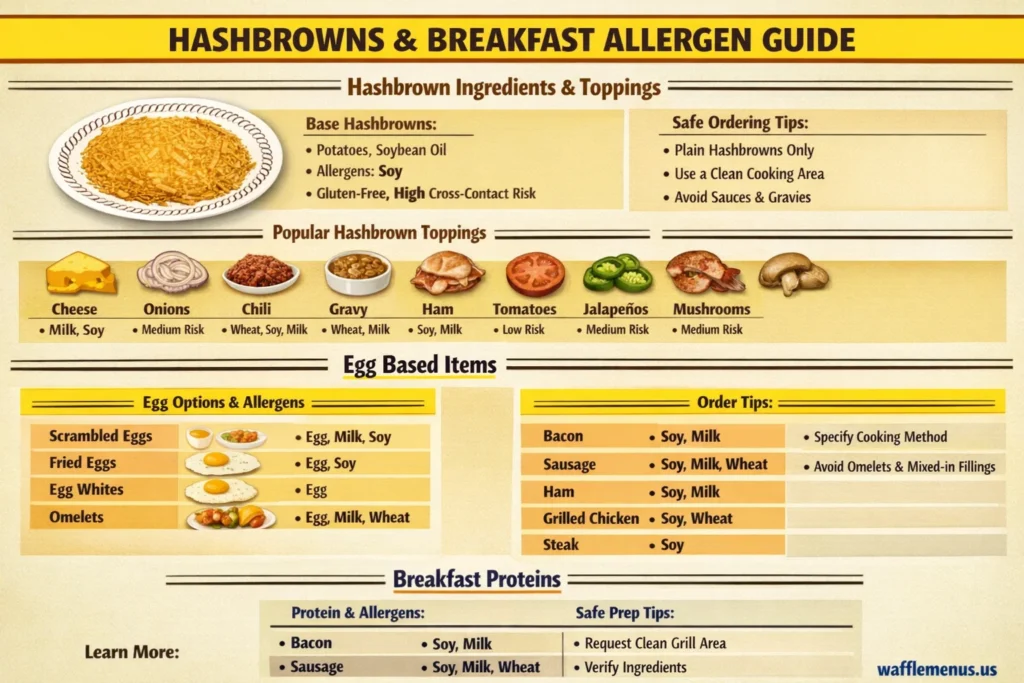 Dining out with food allergies or dietary restrictions requires careful planning, especially at establishments known for their open grill cooking methods. This comprehensive 2026 guide to the Waffle House allergen menu provides detailed information about potential allergens in every menu category, cross-contact risks, and safe ordering strategies. Whether you’re managing gluten intolerance, dairy allergies, egg sensitivities, or other dietary concerns, understanding Waffle House’s allergen landscape is essential for a safe and enjoyable dining experience. For a complete overview of all menu items, visit our Waffle House Menu 2026 hub.